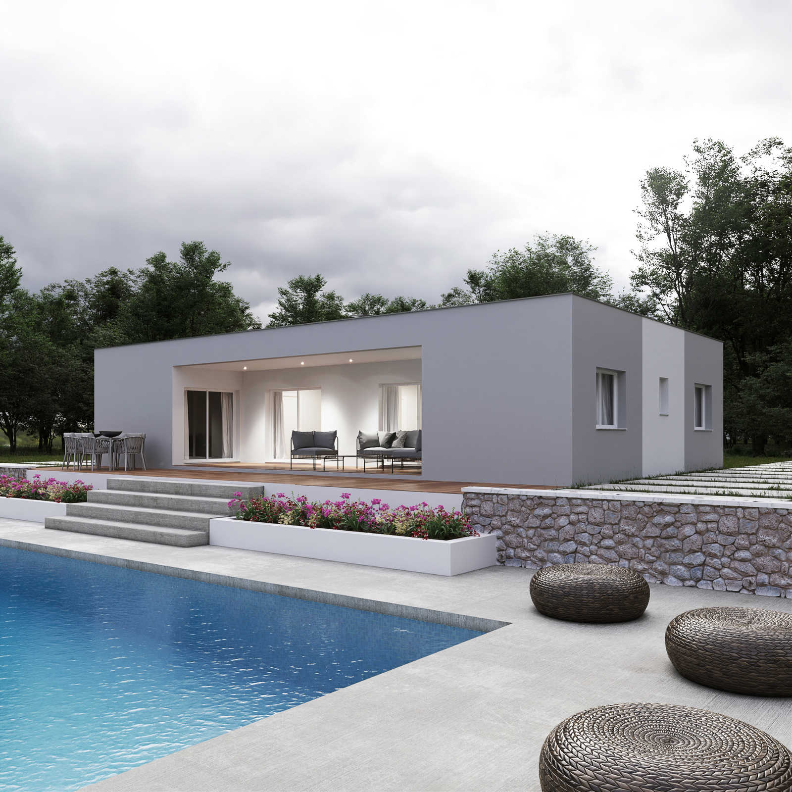 Precio Casa terminada INCLUYE - Proyecto de ejecución y dirección de obra. - Estructura de la casa: muros de carga, divisorias y tejado. - Transporte en tráiler hasta parcela. - Montaje completo con tejado de cerchas de madera. - Ci...