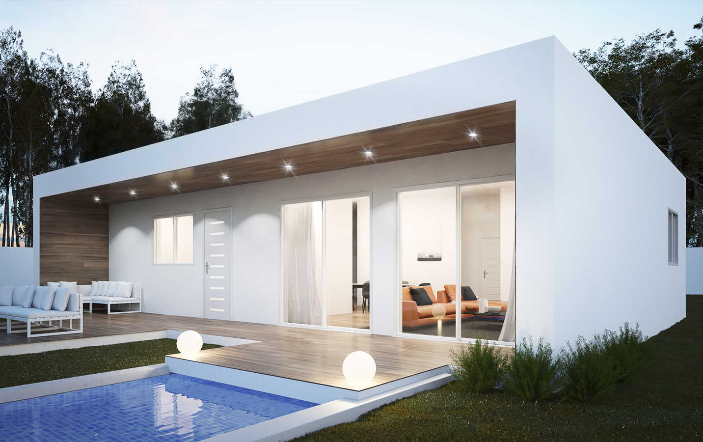 Precio Casa terminada IVA PARA ESTE MODELO - Proyecto de ejecución y dirección de obra. - Estructura de la casa: Muros de carga, divisorias y tejado. - Transporte en tráiler hasta parcela. - Montaje completo con tejado de cerchas de madera -...